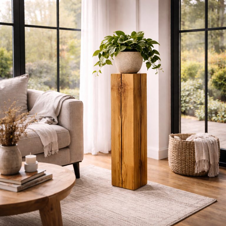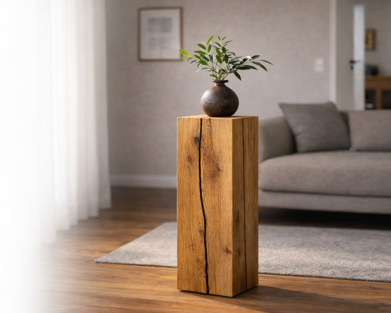Die Säule hebt Pflanzen oder Objekte auf Augenhöhe und gibt deinem Raum Struktur – ohne ihn unruhig zu machen.